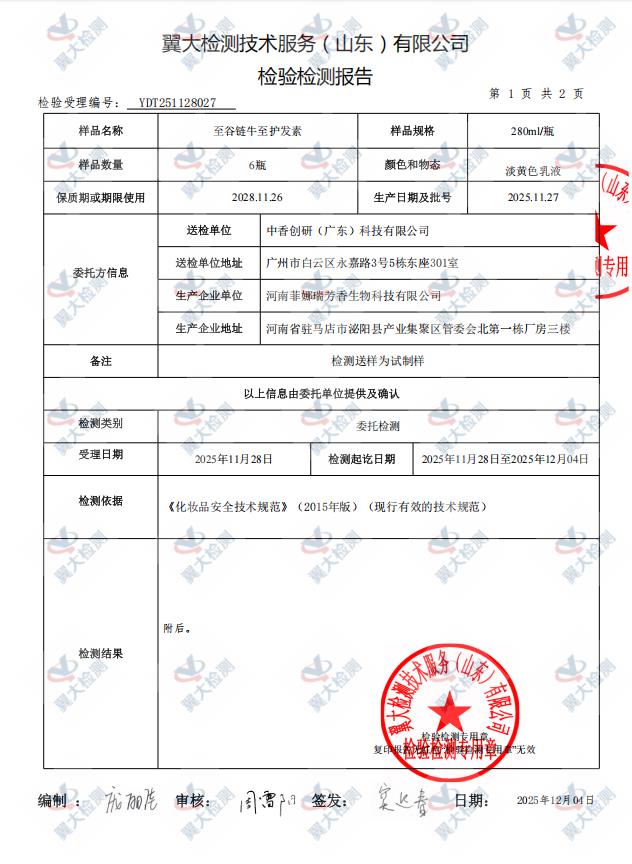 至谷链牛至护发素检验检测报告